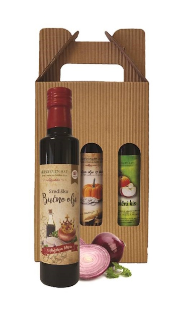 Oljarna JERUZALEM SAT iz Središča ob Dravi, se s svojo preko stoletno tradicijo predelave 100%, naravnega bučnega olja, uvršča v najvišji kakovostni razred in med slovenske zaščitene posebne kmetijske pridelke oziroma živila z geografsko označbo. Odlične bučnice iz okoliških krajev z največ sonca Prlekije in Prekmurja, dajejo našemu olju osnovo za dober proizvod. Receptura naših dedov je pustila svoj pečat skozi sto let - KVALITETO. Nudimo vam bogat darilni program.